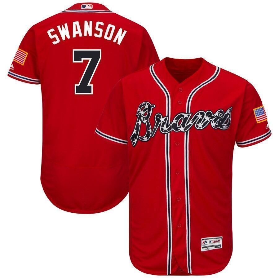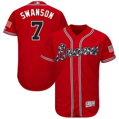 Dansby Swanson Atlanta Braves Majestic Home Flex Base Collection Player Jersey - White/Scarlet